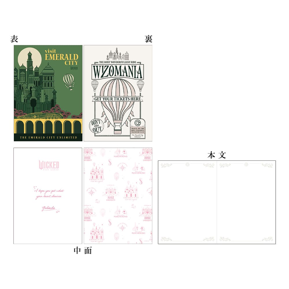 グリンダがエルファバに贈ったメッセージ付きのパンフレット風のノートです。