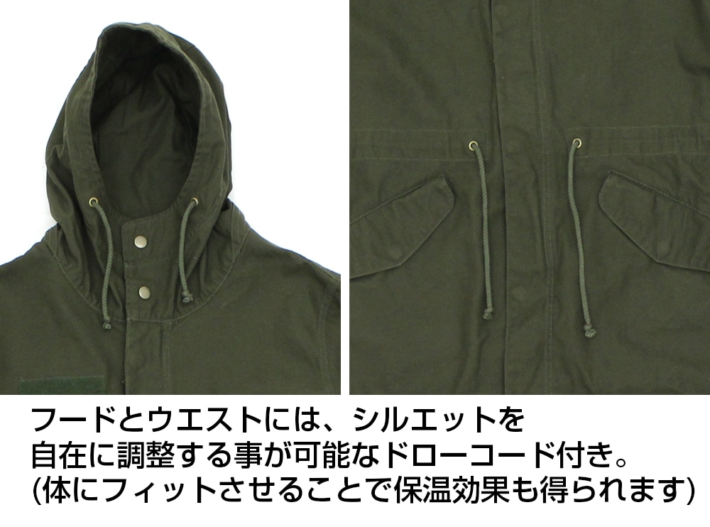 ・フードとウエストには、シルエットを自在に調整する事が可能なドローコード付き。