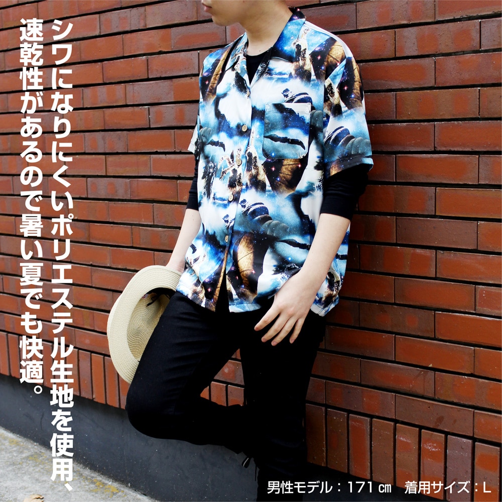 ・通常のアロハに比べシワになりにくいポリエステル生地を使用、速乾性があるので暑い夏でも快適。
