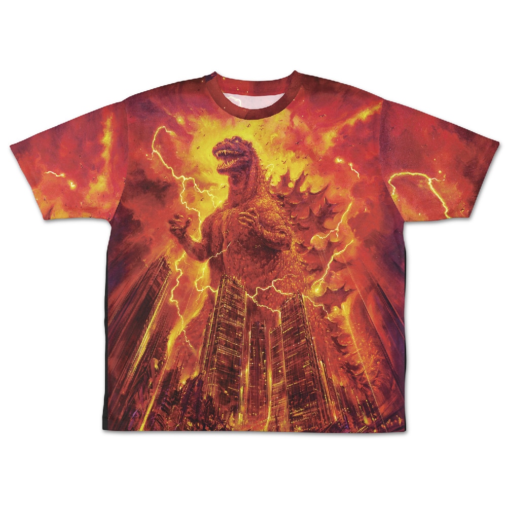 「ゴジラ」(1984年公開)の映画ポスターイラストを大胆にデザインした両面フルグラフィックTシャツ「いま 壮大なロマンの目覚め!」