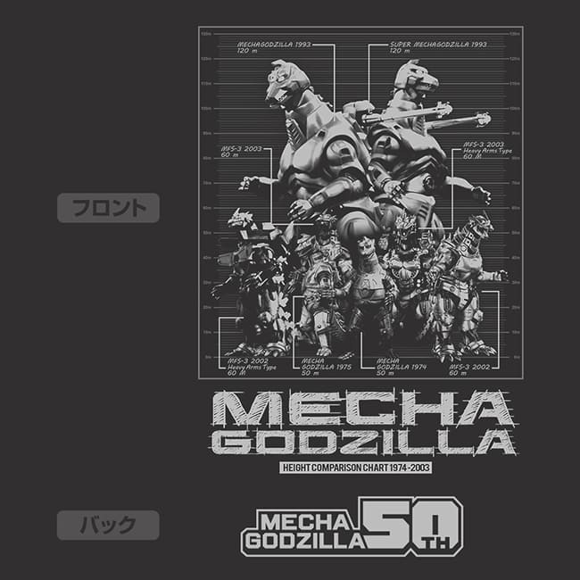 1974~2003年までに製造されたメカゴジラの極秘資料がプリントされた一枚。