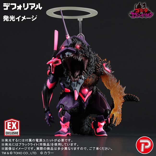 更に今回の「バーニング”G”覚醒形態」では頭部、左腕、エンジェル・ハイロゥを新規造形で立体化しつつ、エヴァンゲリオン初号機覚醒版及び、バーニングゴジラをイメージしたカラーリングを全身に施しました。
