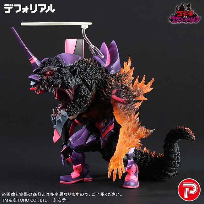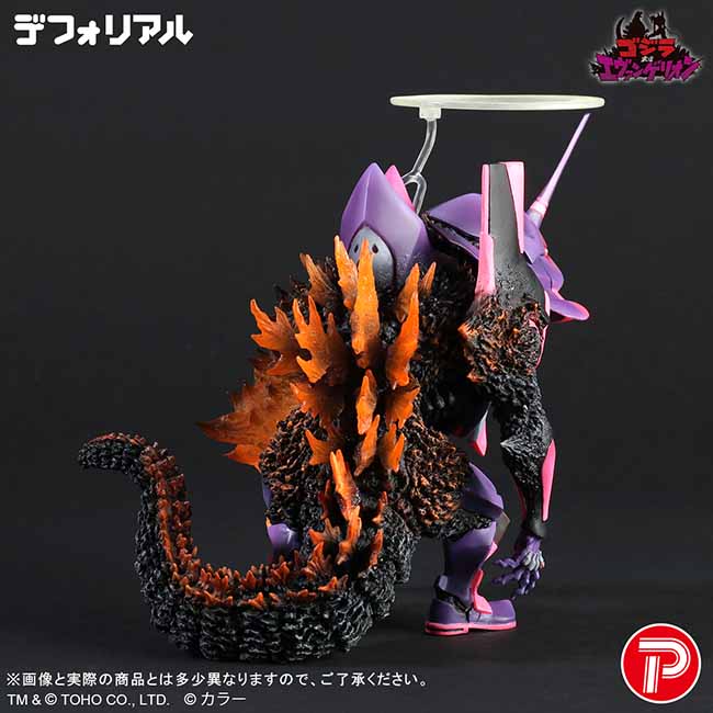 ゴジラの生物的な造形とエヴァンゲリオン初号機の機械的な造形を、それぞれデフォルメしつつもリアルに再現。