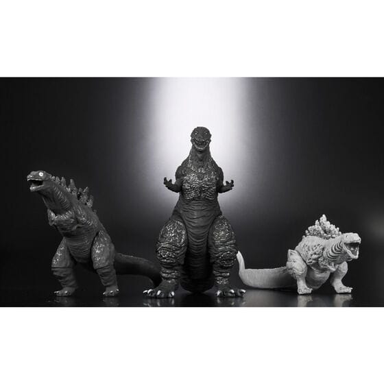 『シン・ゴジラ:オルソ』より、モノクロ仕様に生まれ変わったゴジラ(2016)の3形態がムービーモンスターシリーズで待望のソフビフィギュア化!