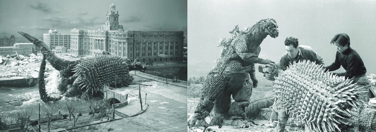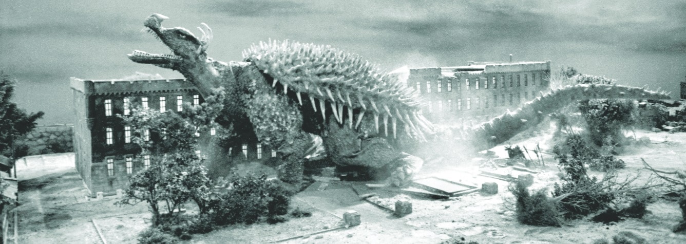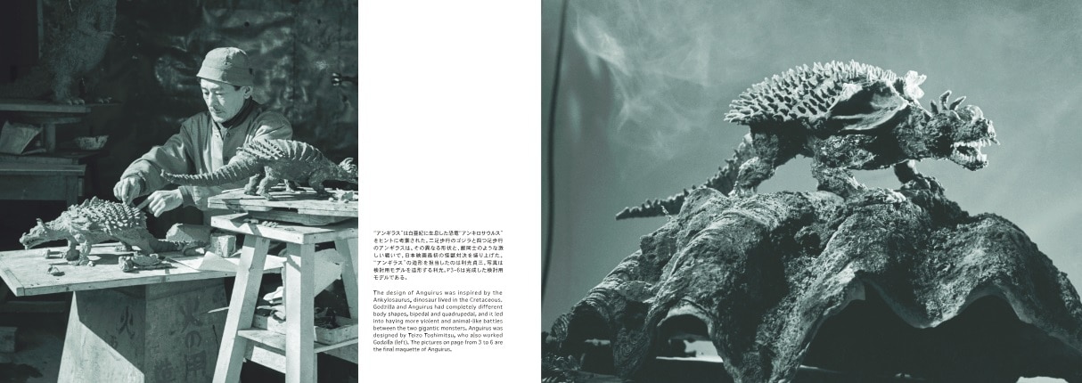 “アンギラス”は、ゴジラシリーズ第2作『ゴジラの逆襲』(1955)に登場し、ゴジラと対戦した最初の怪獣です。撮影時のスナップとスチールで、その造形をお楽しみ下さい。