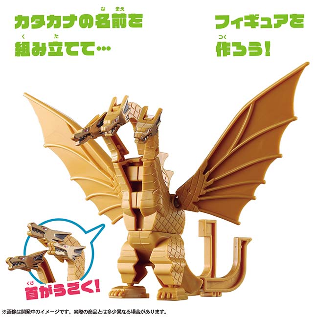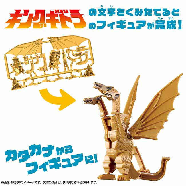 カタカナの文字を組み立てると可動フィギュアが完成する組み立てキット「カナモデル」よりキングギドラが登場!