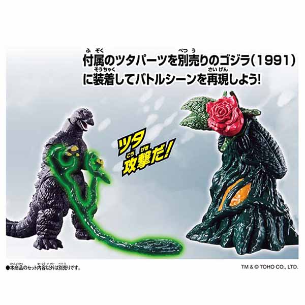 特徴的なギミックや可動が搭載されており、「ビオランテ(花獣形態)」は付属のツタパーツを同シリーズ(別売り)のゴジラ(1991)に取り付けることで、印象的なバトルシーンを再現可能!