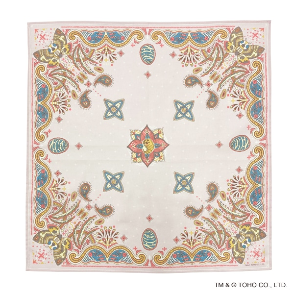 綿ローン生地を使用した、さらっとした肌触りの大伴サイズのハンカチです。モスラをモチーフにしたペイズリー柄デザイン