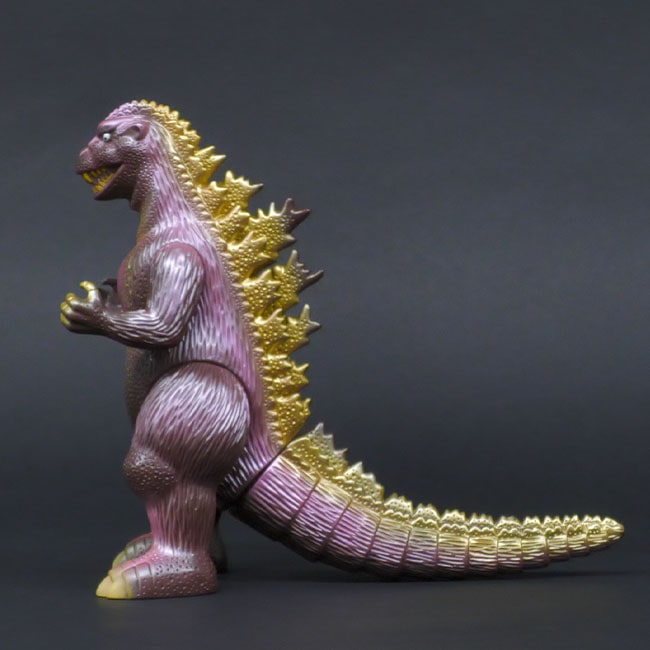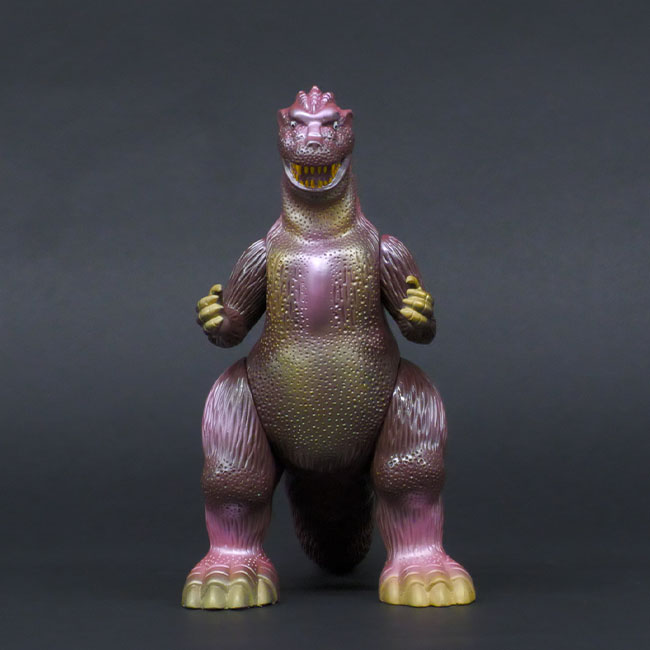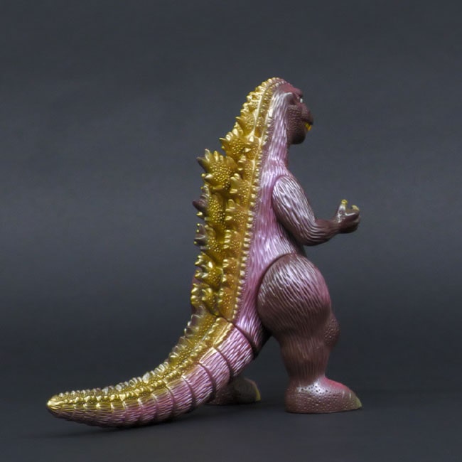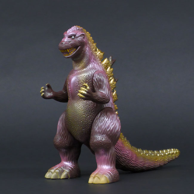 本品は、昭和30年代の日本初のゴジラのプラモデルの成型色イメージの茶色成型に、ゴールドスプレーをあしらっています。