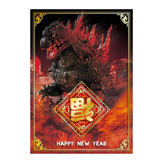 “倒福”カード。ゴジラの雄姿と共に福がやってくる!