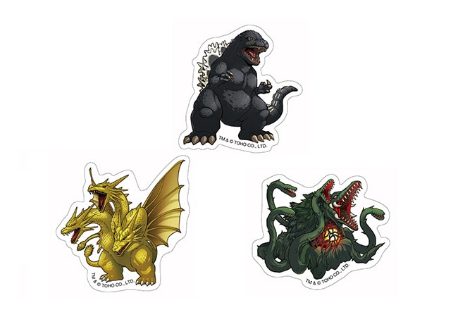 ゴジラがデザインされたステッカー3枚を1セットにしたステッカーセット。