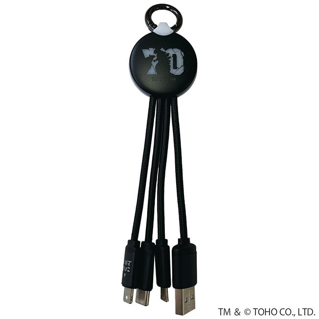 ゴジラ70周年のロゴが光る!マルチ充電ケーブルが登場!バッグにも付けられるキーホルダータイプ!