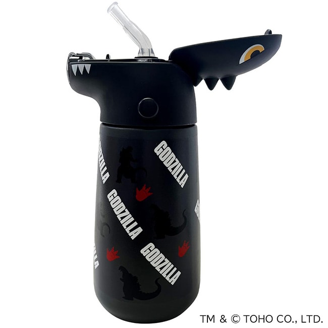 キャップ部分がゴジラの形をしたステンレスのストロー飲み水筒です。