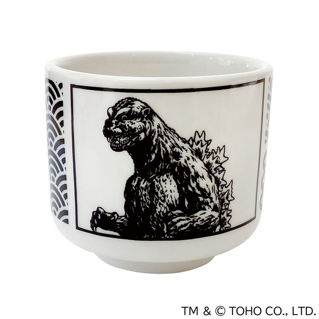 ゴジラのパーツと和柄がデザインされた御猪口です