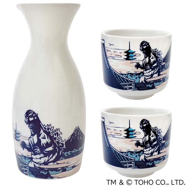 徳利とお猪口2個のセットです。晩酌のお供にゴジラをどうぞ