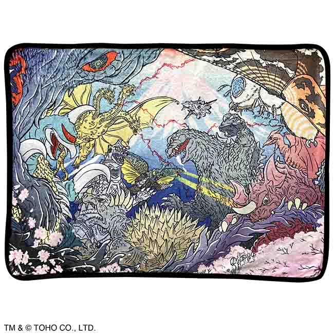 1968年に公開された映画作品『怪獣総進撃』をモチーフに現代浮世絵風タッチの描き下ろしアート「富士怪獣大乱戦」のブランケットが登場!