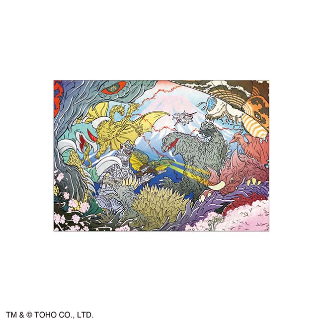 1968年に公開された映画作品『怪獣総進撃』をモチーフに現代浮世絵風タッチの描き下ろしアート「富士怪獣大乱戦」デザインのグッズが登場!