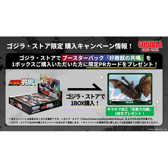 ブースターパック『好敵獣(ライバル)の共鳴』を1ボックス購入でキラキラ加工のゴジラ・ストア限定特典 限定PRカード「反重力光線」をプレゼント!