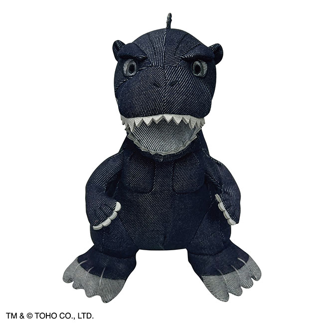 インテリアとしてもおしゃれなデニム地のゴジラのぬいぐるみです。