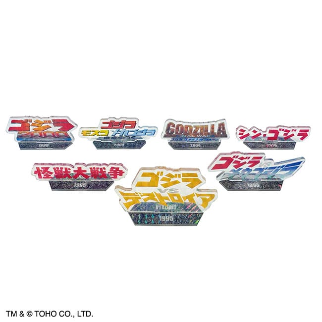 歴代ゴジラシリーズのタイトルロゴがアクリルスタンドになって登場!