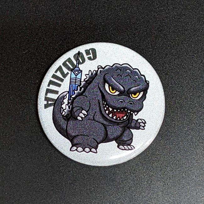 暗い夜道で反射して光る、交通安全用のリフレクター缶バッチ。