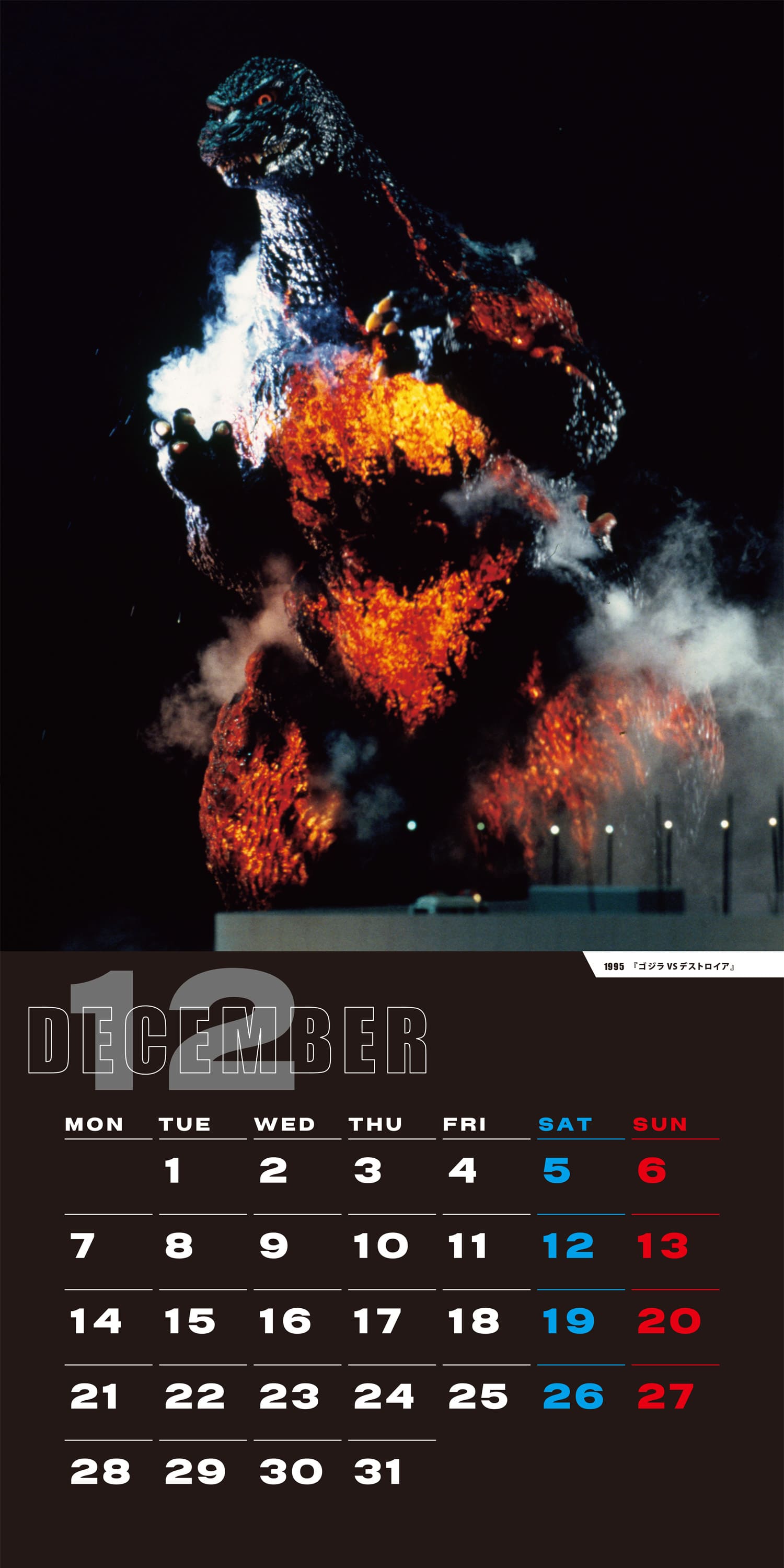 今年の表紙は、公開30周年を迎えた伝説の『ゴジラVSデストロイア』より、熱く燃え上がるバーニングゴジラが大迫力で君臨