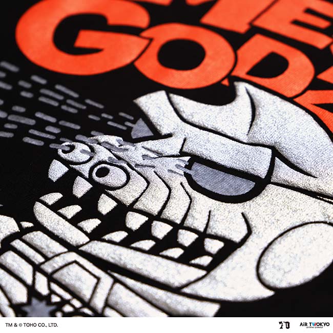 背中はゴジラ70周年ロゴをブラック箔で加工し、ゴジラのゴツゴツとした皮膚を再現した加工が施されています。