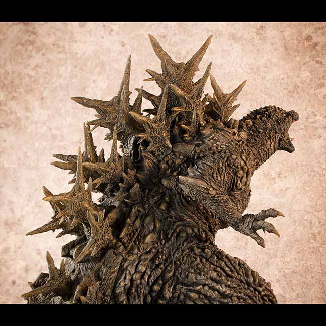 独特な背びれの形状は根本から先端までシャープに造形が施され、全身の体表は、破壊、再生を繰り返しおどろおどろしく重なり合った表皮の様子を生々しく再現しています。