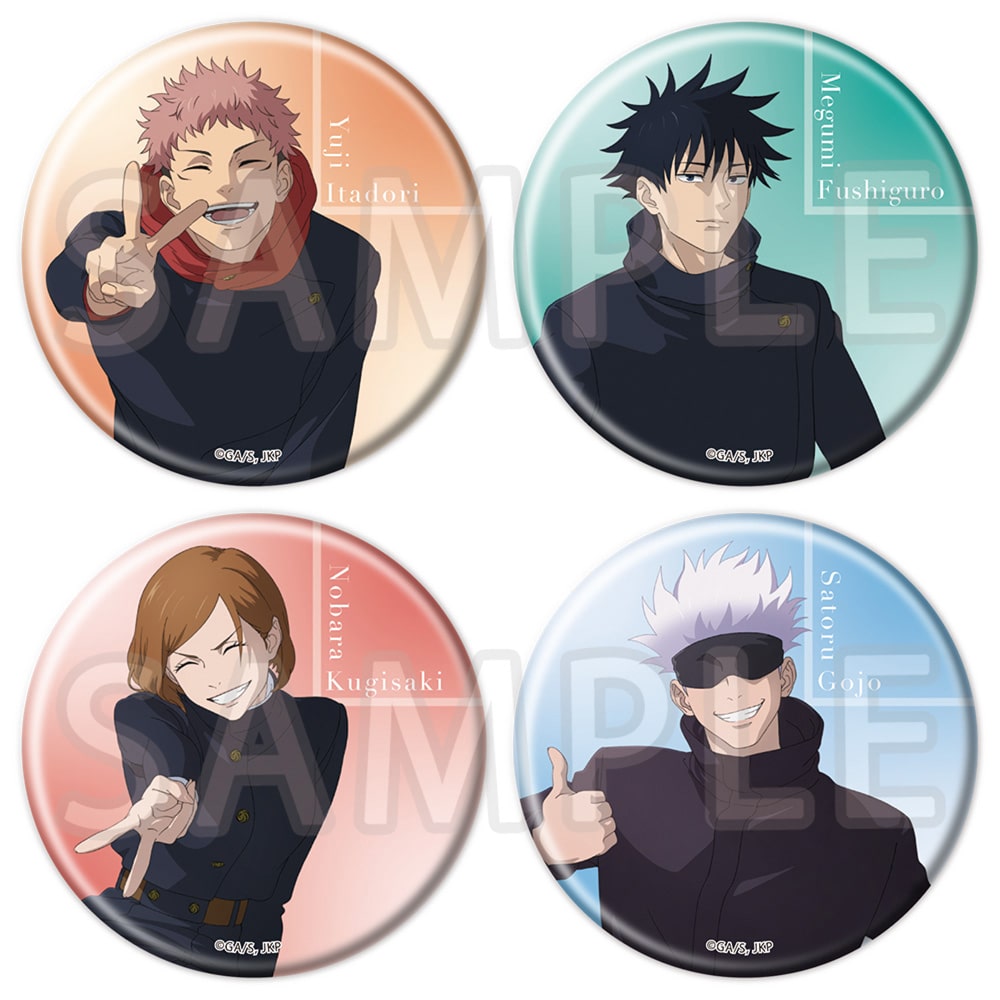 絵柄は「虎杖悠仁、伏黒 恵、釘崎野薔薇、五条 悟」のビジュアルを使用した全4種です。