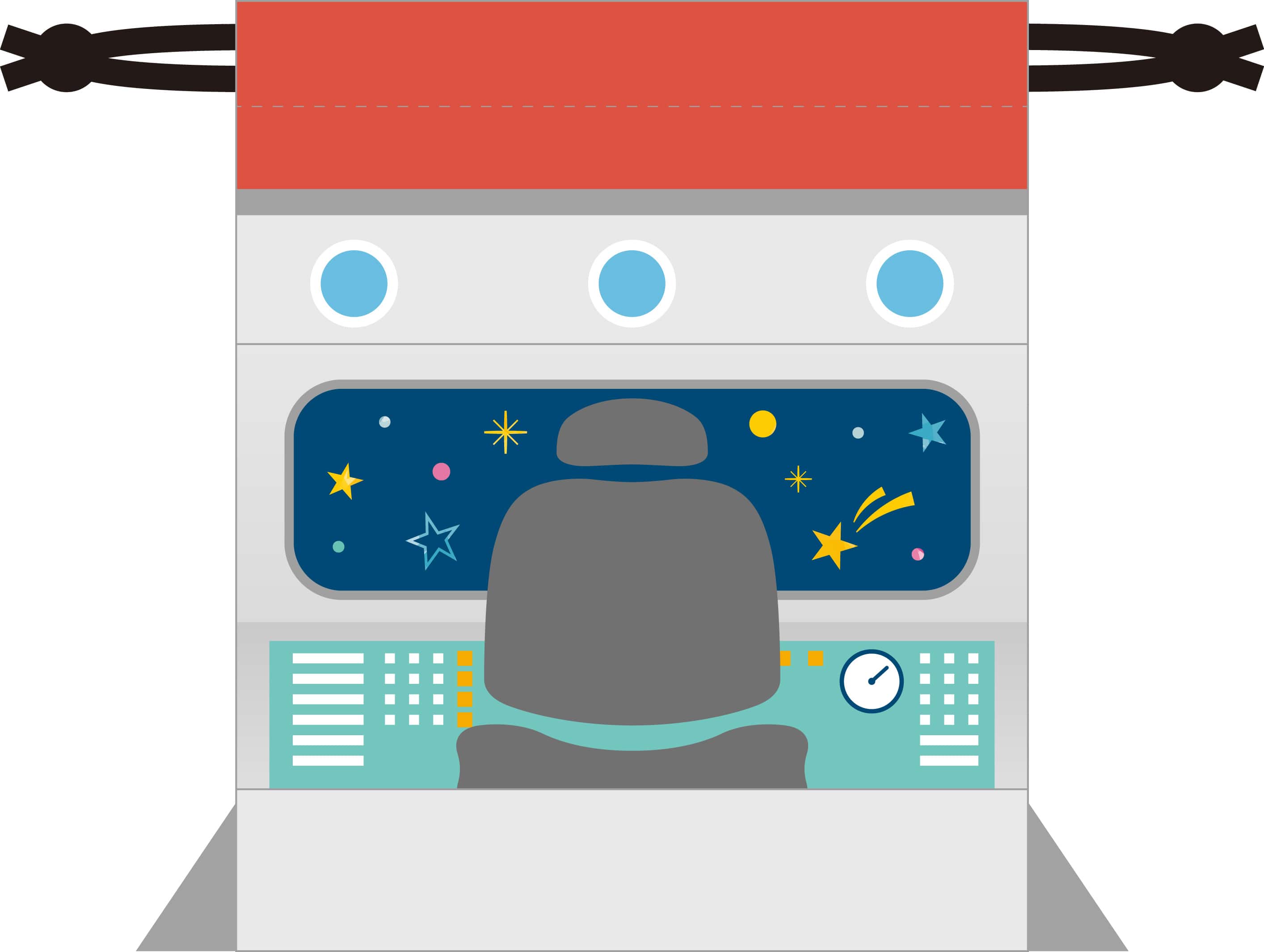 ロケットをモチーフにした巾着は透明な窓付きで、「みみぐるみ」を入れるとまるでキャラクターがロケットの中にいるように!