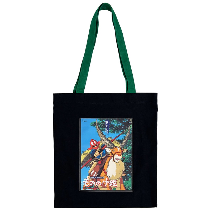 公開当時のポスタービジュアルを使用した、大きめの外ポケットが便利なトートバッグです。緑のハンドルは、肩掛けしやすい長めな仕様です。