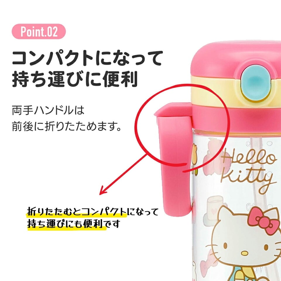 本体は割れにくく、透明度の高いPET素材を使用。底部分が広くなっているから倒れにくい!両手ハンドルは前後に折りたためるので、コンパクトになって持ち運びに便利!