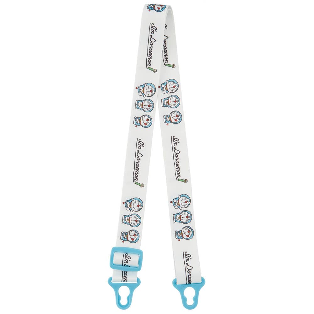 肩にかけて持ち運べるショルダーベルト付き。名前シール付き。