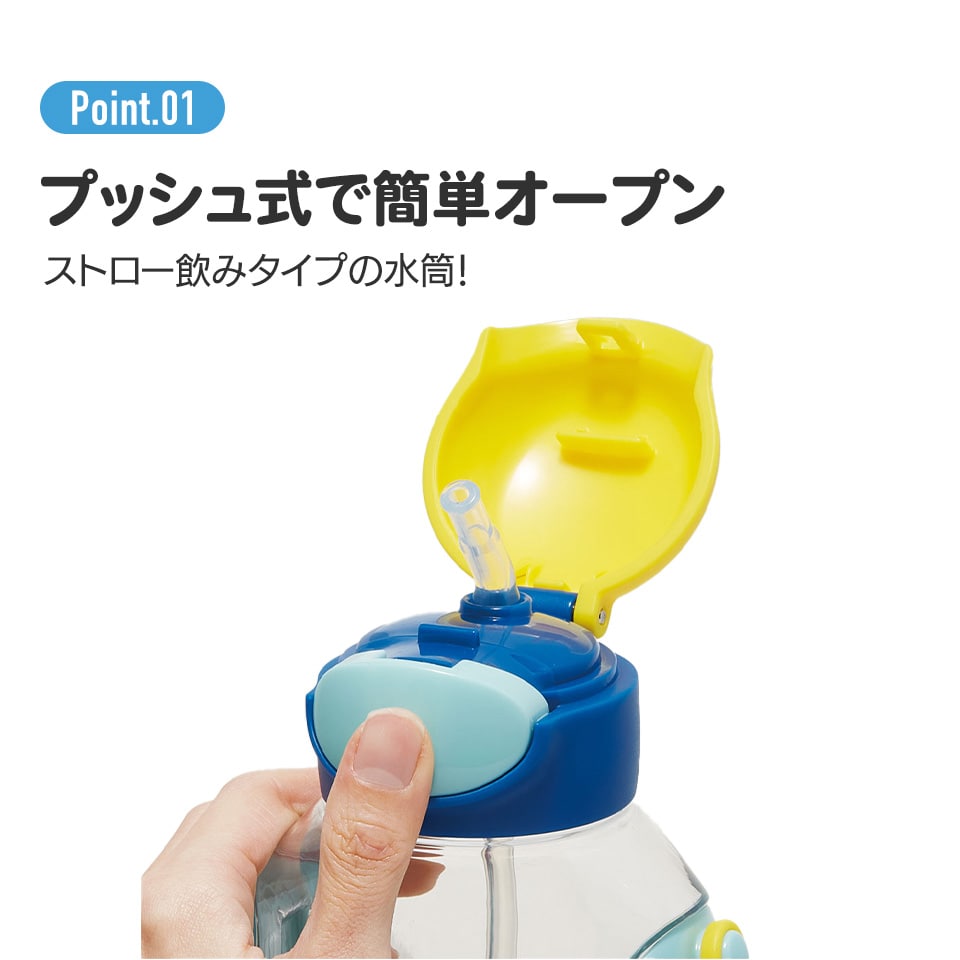 本体は中身が見えるクリアで丈夫な素材。ワンプッシュオープンでシリコーン製のストローが出てきて飲みやすい!