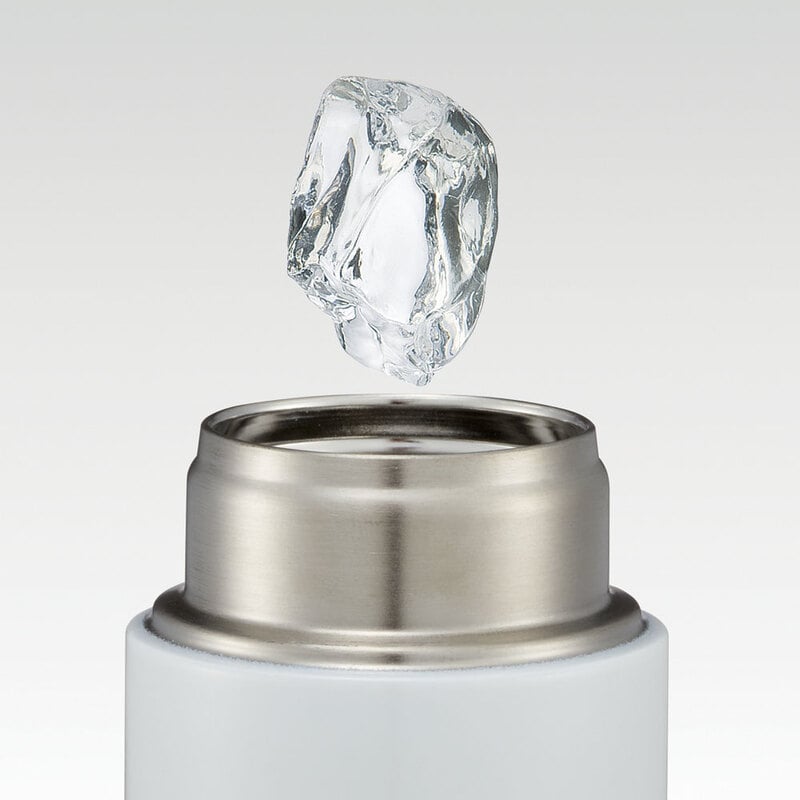 コンパクトサイズの直飲み水筒。保冷保温ができるステンレス真空二重構造。氷が入れやすい広口タイプ。