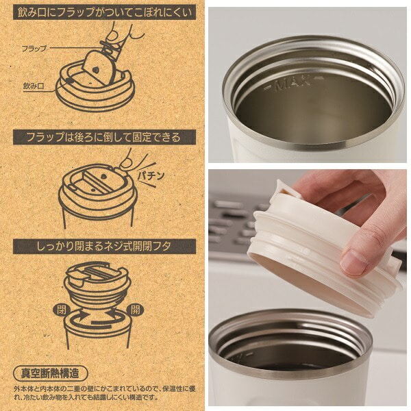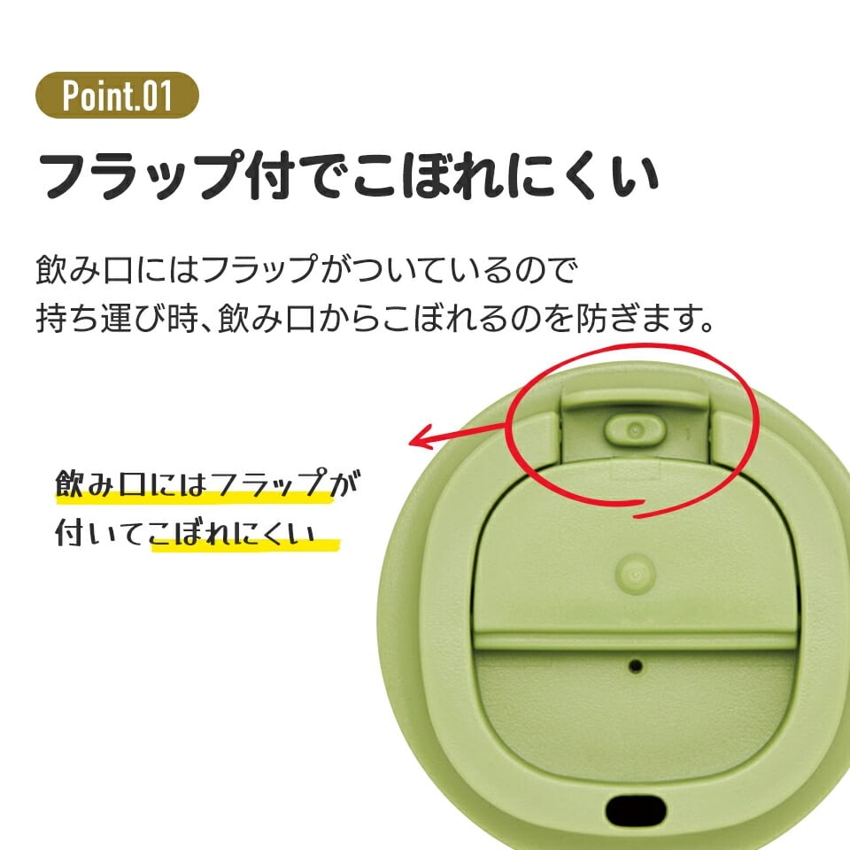 飲み口にフラップが付いてこぼれにくい!