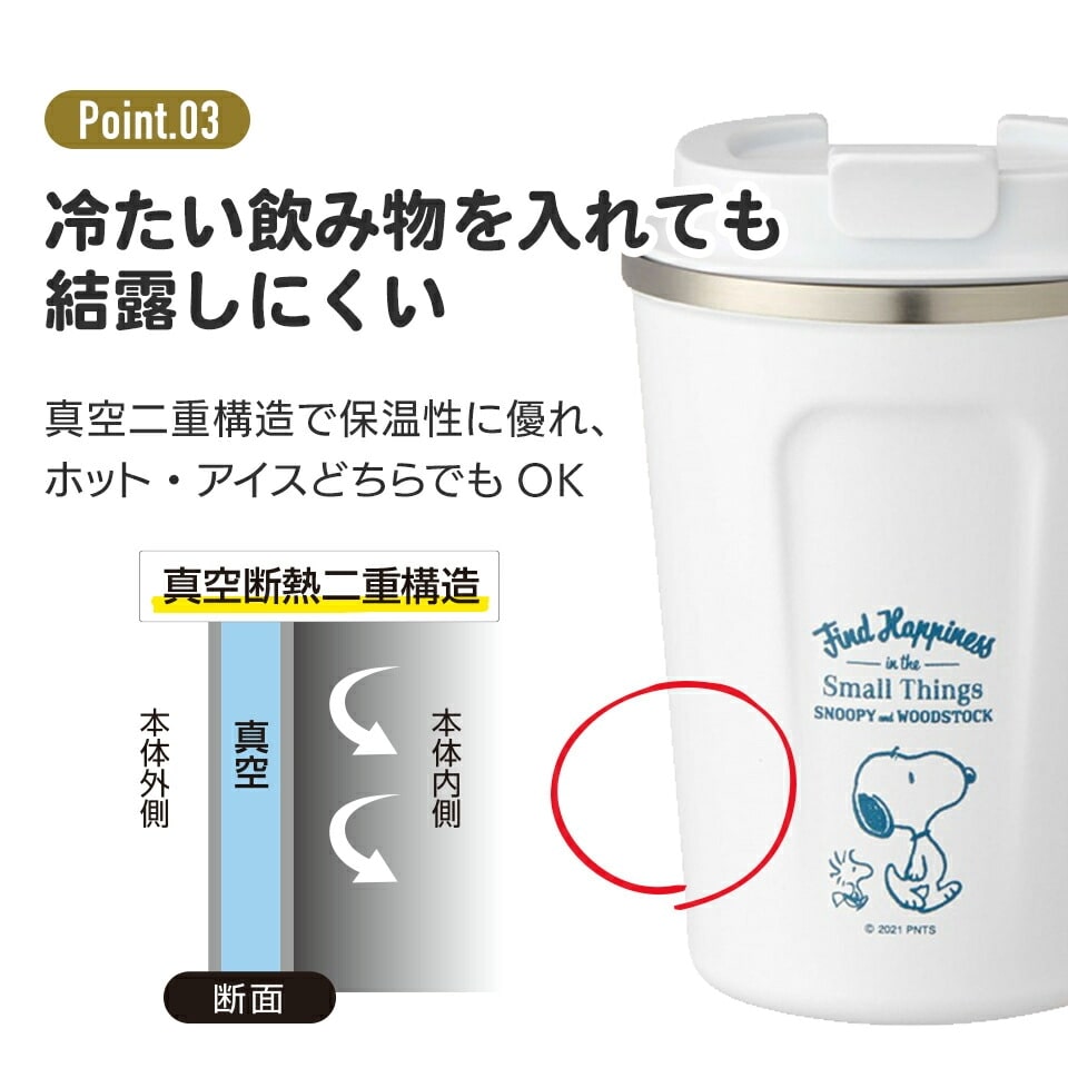 真空二重構造で保温性に優れ、冷たい飲み物を入れても結露しにくい!!