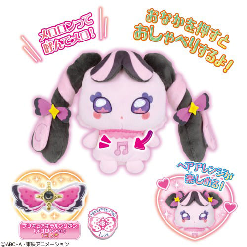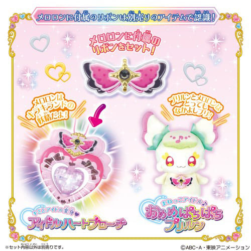付属の「プリキュアキラルンリボン(メロロンver.)」は別売りの「アイドルハートブローチ」や「おめめぱちぱちプリルン」で特別な音声を楽しめます!