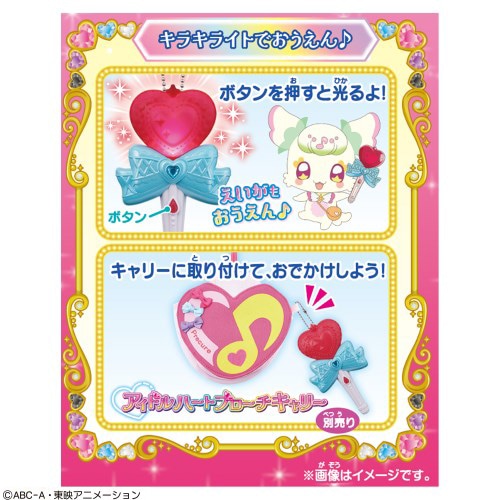 プリキュアアイドルハートリボンを使って、TVではキュアアイドル-アイドルハートリボンスタイル-に、映画ではキュアアイドル-ゴッドアイドルスタイル-にスタイルチェンジ♪ 映画に登場する特別カラーのキラキライトとのセットです。