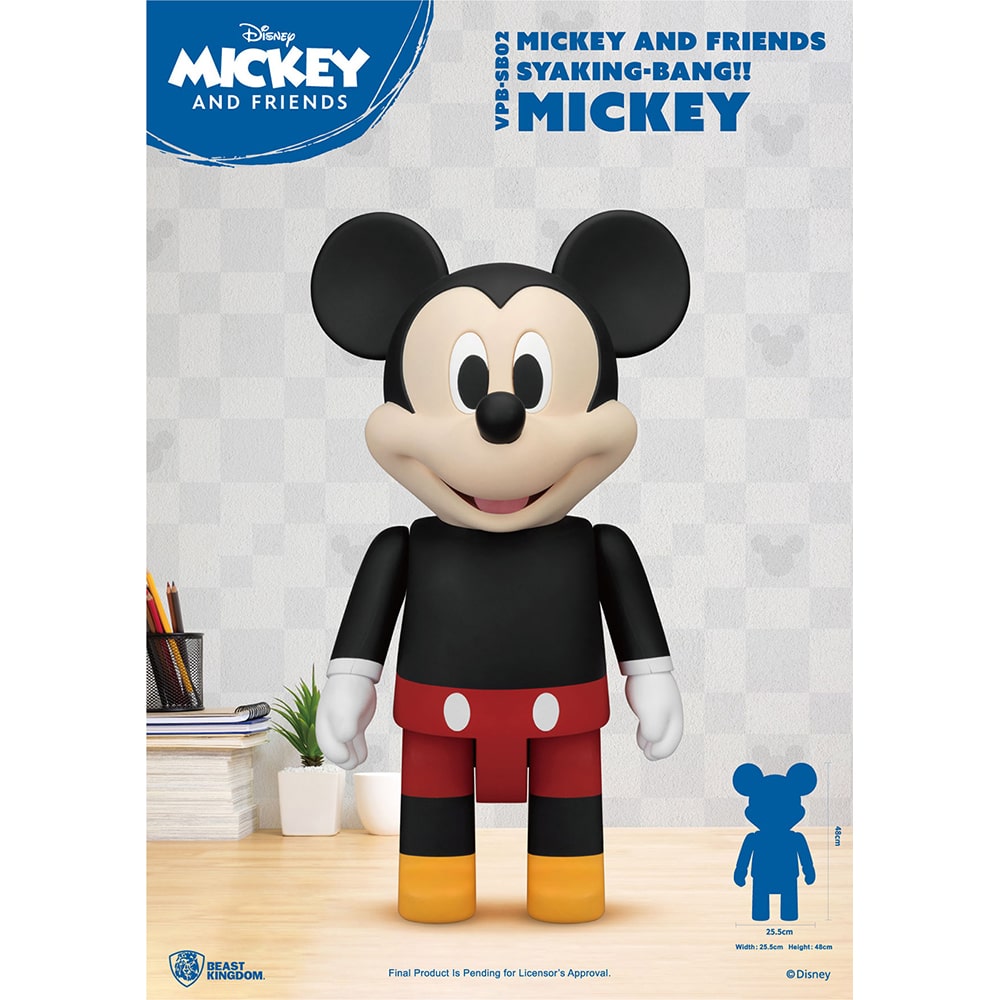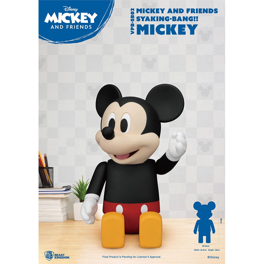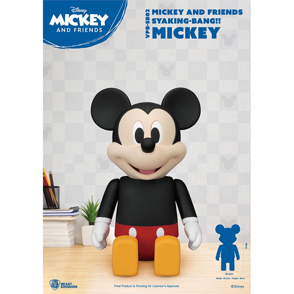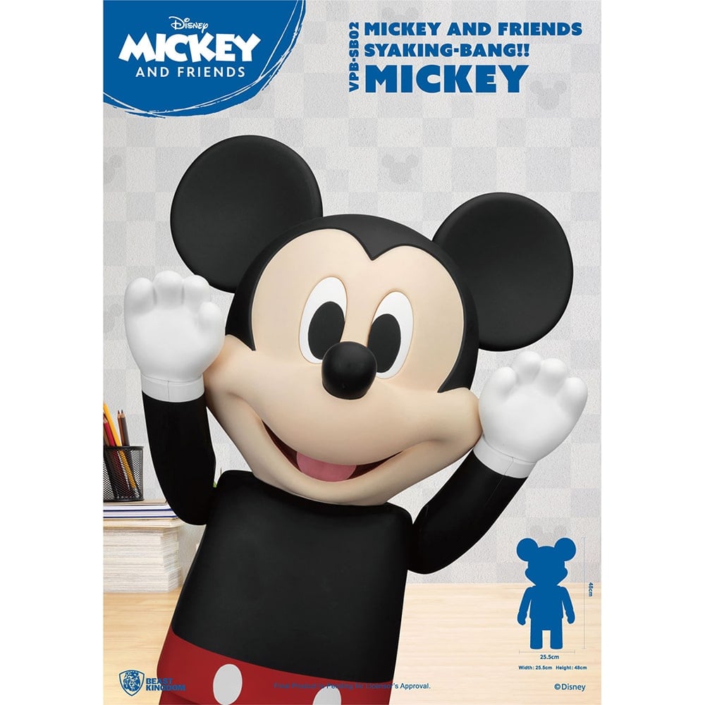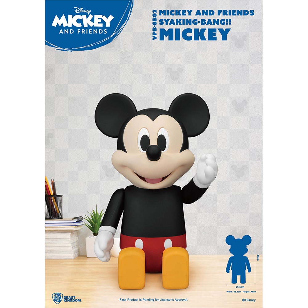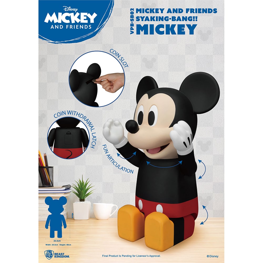 ミッキーマウスを、全高約48cm、手・足・頭の5箇所が可動するラージフィギュア貯金箱として立体化。立った状態と座った状態の2通りでディスプレイが可能だ。頭の後ろのスリットからコインを入れることができ、貯めたコインは背中から取り出せるぞ。