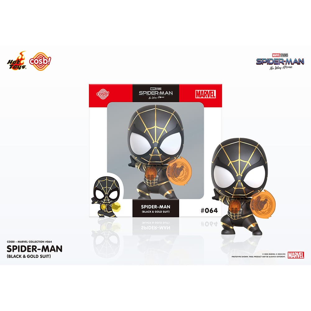 ホットトイズがお贈りする、シンプルで愛らしいフォルムと集めやすいサイズが特徴的なデフォルメフィギュア「コスビ」シリーズが、日本オリジナルパッケージで登場!「マーベル・コレクション」より、スパイダーマン(ブラック&ゴールドスーツ)がラインナップ!