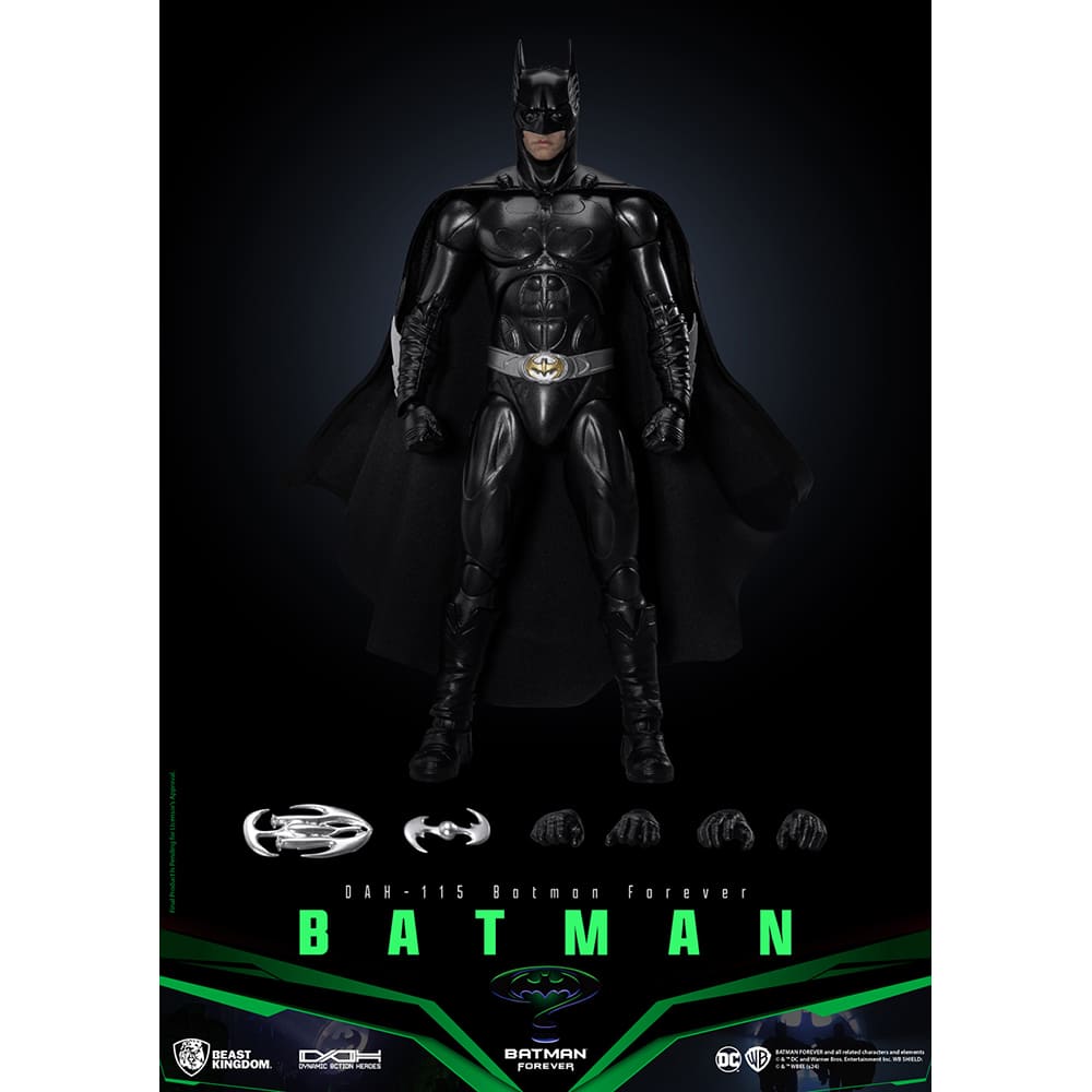 台湾のメーカー、ビースト・キングダムがお贈りするアクションフィギュア「ダイナミック・アクション・ヒーローズ」シリーズに、映画『バットマン フォーエヴァー』より、バットマンがラインナップ!バットマン85周年を記念した特別パッケージで登場だ!
