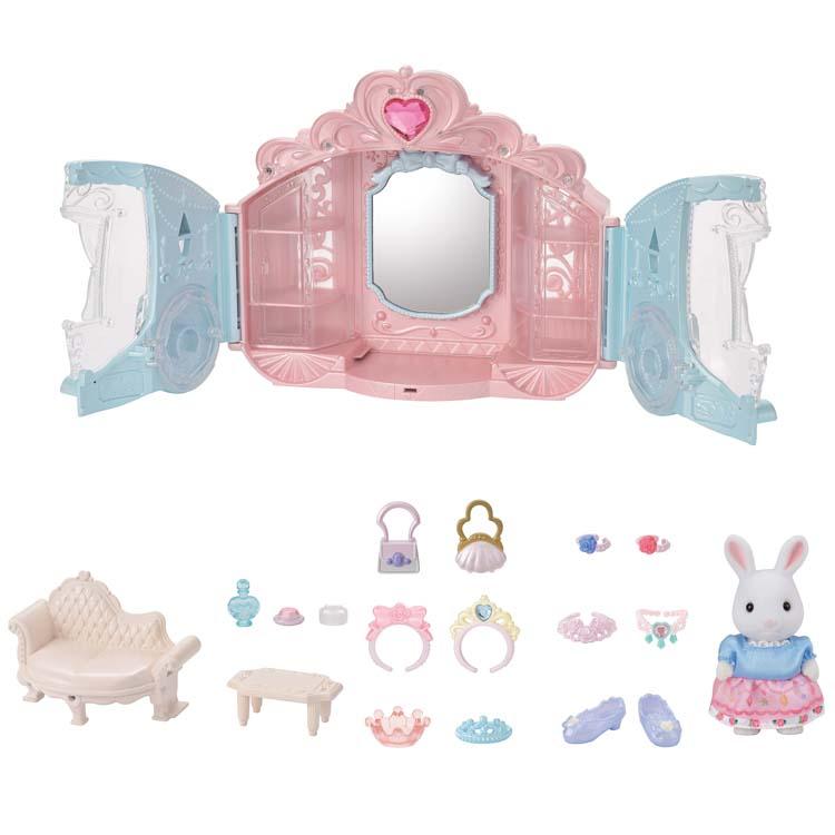 馬車の両扉を開くと、アクセサリーがたくさん飾れるおしゃれなお部屋に変身します。