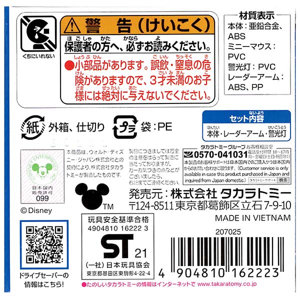透明なレーダーパーツを搭載したミニーマウスのトミカです。