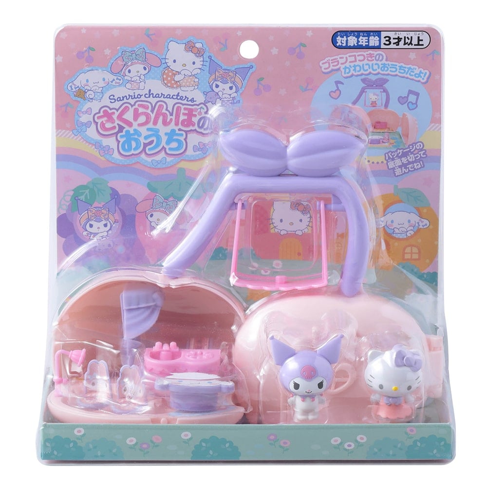 さくらんぼのおうち(1個)、クロミちゃん人形(1体)、キティちゃん人形(1体)、キッチン(1個)、テーブル(1個)、椅子(2個)、ベッド(1個)
