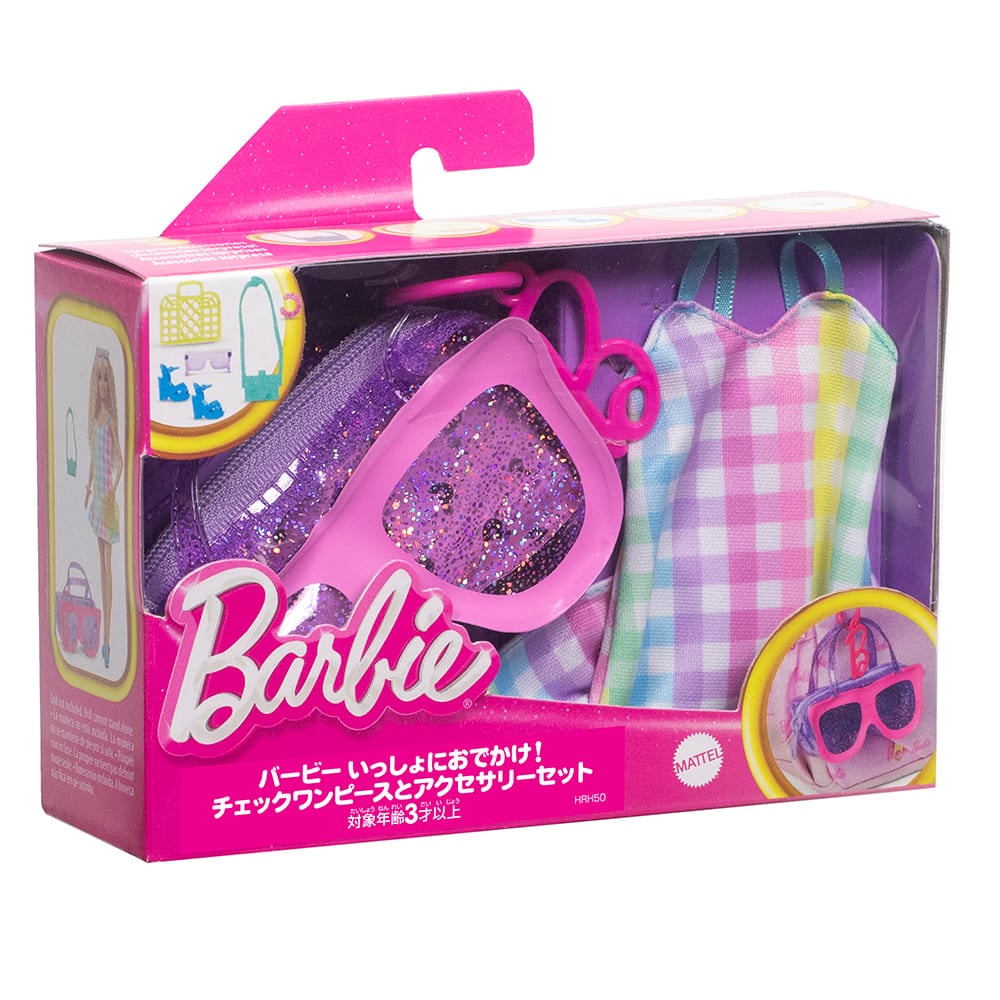 - > バービー いっしょにおでかけ!チェックワンピースとアクセサリーセット
