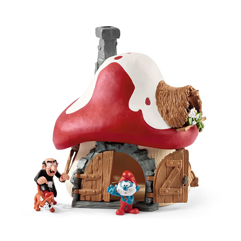 おおきなスマーフのおうち、パパスマーフ、ガーガメルとねこのアズラエルが入っています。