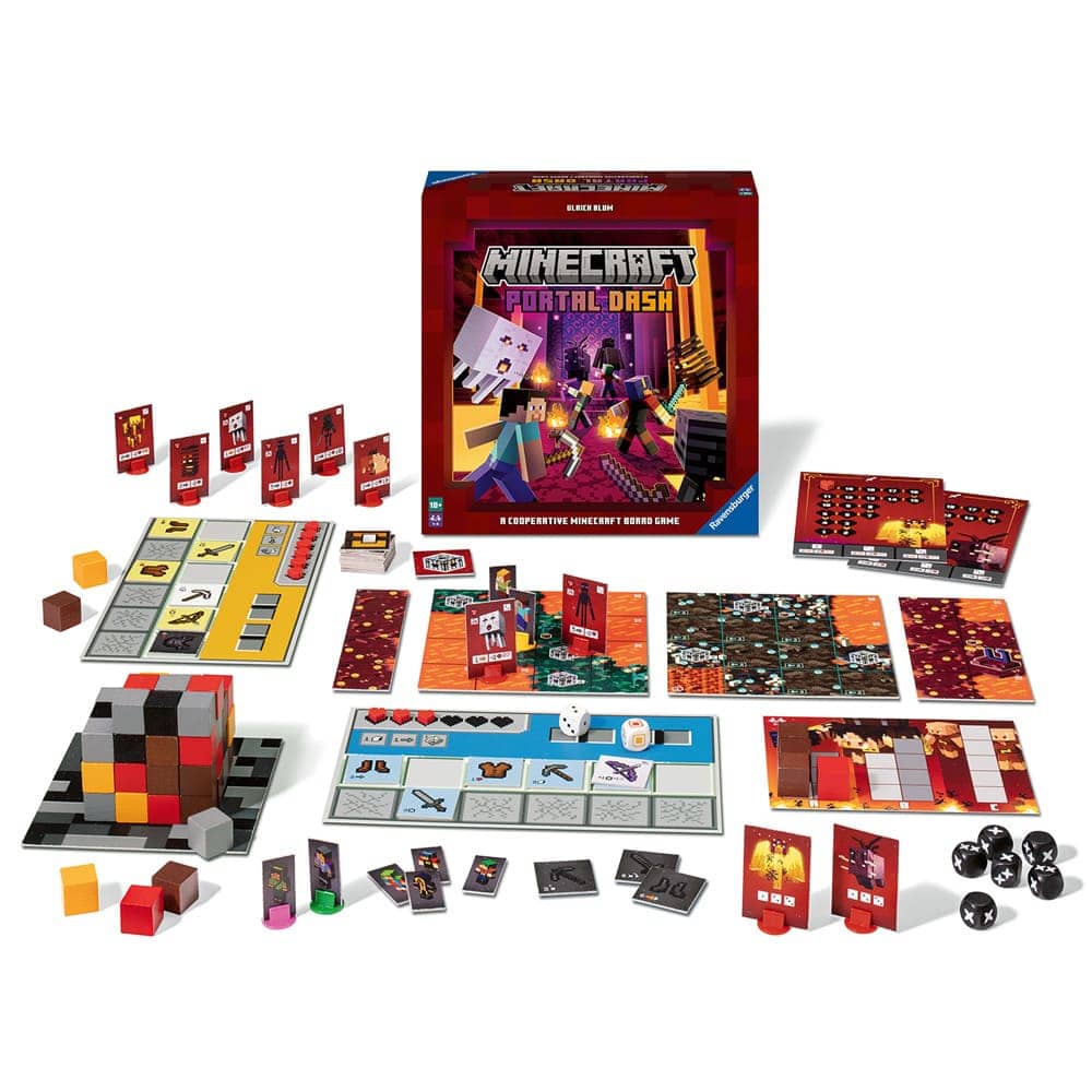 木製ブロック×64、ダイス×8、ハートマーカー×48、ゲームボードタイル×10、インベントリボード×4、ピグリンボード×1、スタンド付きモンスター×20、アイテムタイル×68、スタンド付きプレイヤースキン×8、チェストマーカー×5、モンスタースポナーマーカー×1、ブロックパッド×1、ブロック積み上げサポート一式、日本語説明書