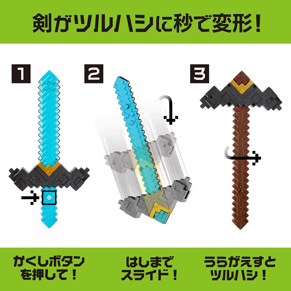 ボタンを押すだけのワンタッチでツルハシが剣にチェンジ!?