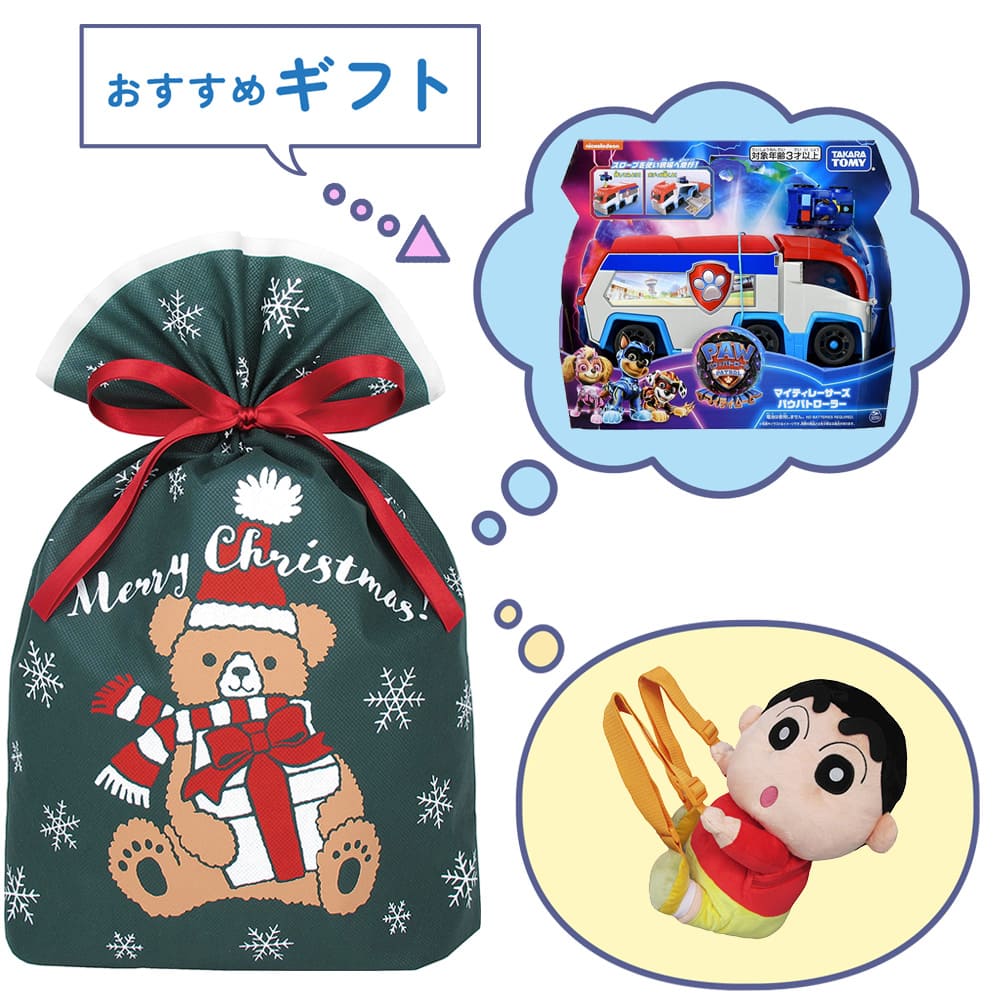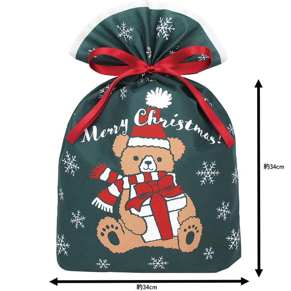 クリスマス ラッピング袋 不織布 ギフトベア/ダークグリーンL